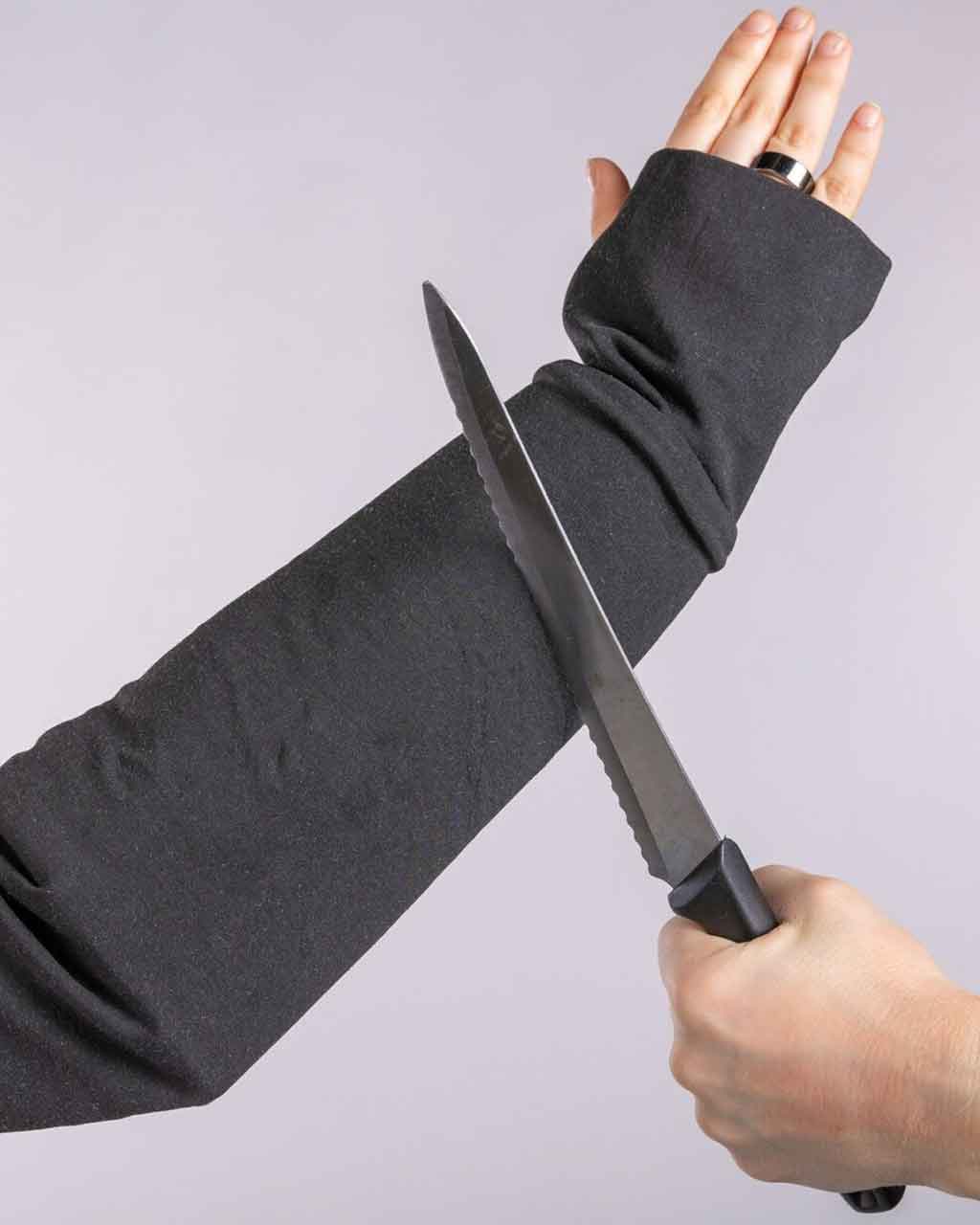 ABLE® Säkerhetssleeve är en skärskyddad och vadderad armskydd för professionellt bruk. Två lager: yttre Cutlon® skärskyddad stickad väv (93% Dyneema, 7% Lycra) och inre 8 mm skum som dämpar trauma från slag och bett.